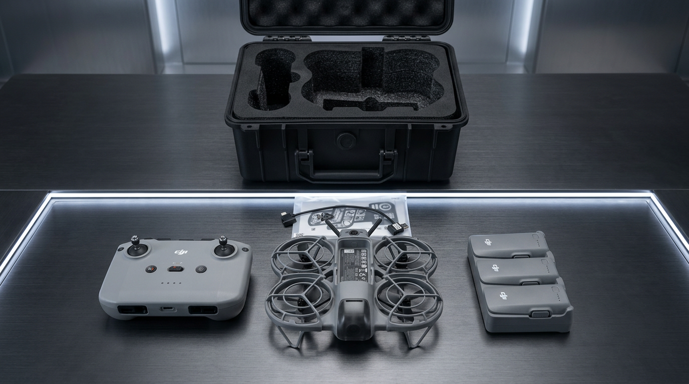 Get a complete used DJI Neo 2 Fly More Combo setup with the drone, multiple batteries, controller, ND filters, hard case, and extra propellers included. This bundle is a strong option for buyers who want a ready-to-fly DJI package at a better value than buying new, while still getting the accessories that make flying easier, safer, and more convenient. DJI’s current Neo 2 Fly More Combo includes the drone, RC-N3 remote controller, 3 Intelligent Flight Batteries, a Two-Way Charging Hub, Digital Transceiver, propeller guards, and spare propellers.